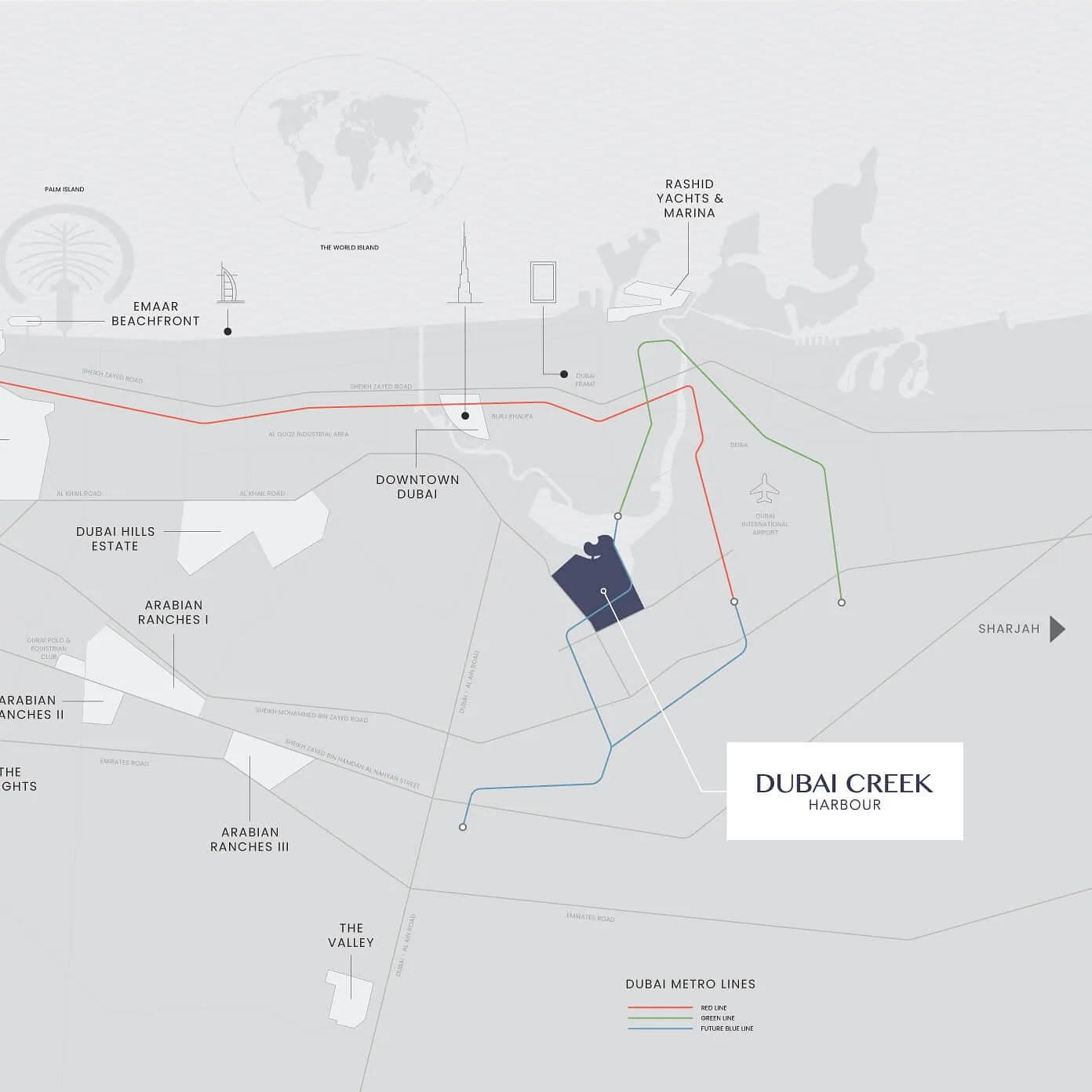 Albero is perfectly positioned in the prestigious Green Gate district of Dubai Creek Harbour, offering residents a harmonious blend of urban convenience and natural serenity. As the gateway to this thoughtfully planned community, Albero enjoys direct access to beautifully landscaped parks, tree-lined walkways, and expansive green spaces that define the district. Green Gate is the least dense area within Dubai Creek Harbour, ensuring a peaceful living environment while being just moments away from the vibrant waterfront, retail promenades, and cultural attractions.