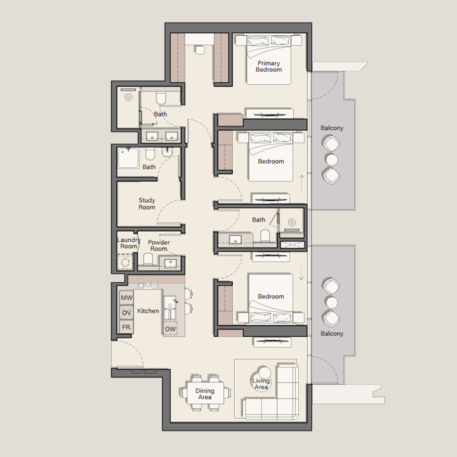 Belgrove Residences offers luxury 1, 2, and 3-bedroom apartments, designed with modern finishes and high-quality materials.