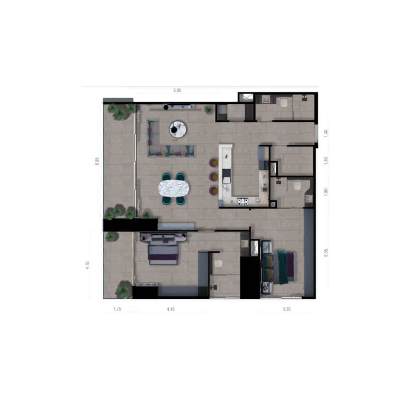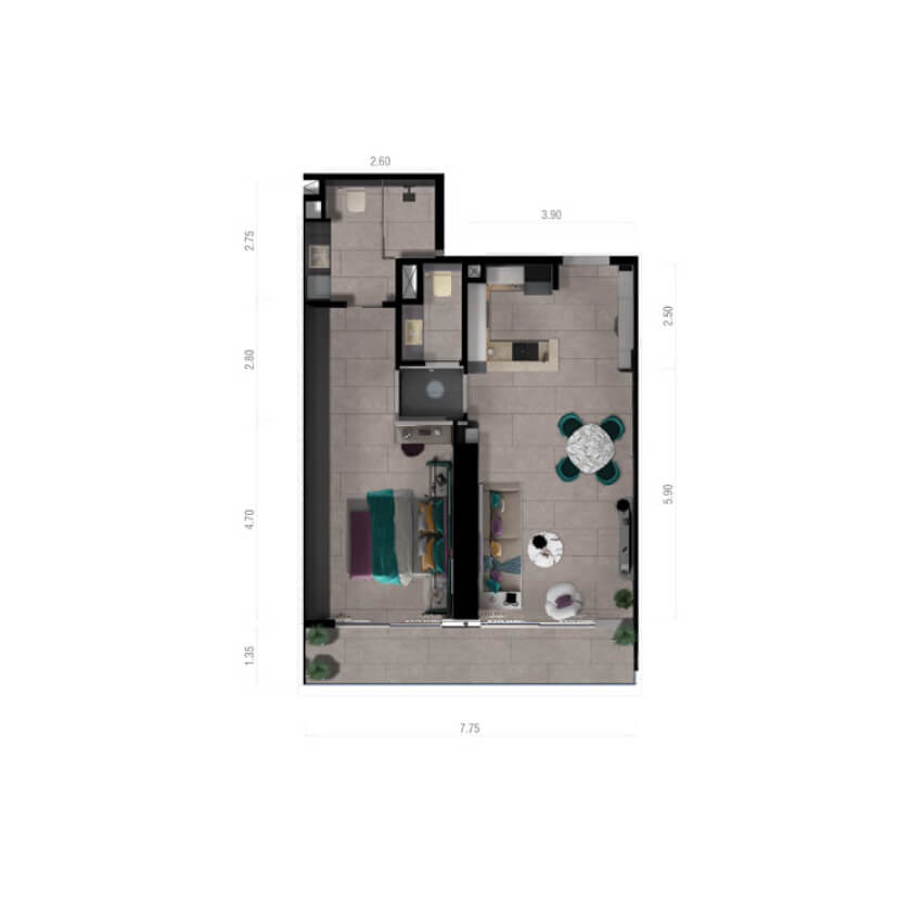 The project offers fully-furnished studio, 1-bedroom, and 2-bedroom apartments.