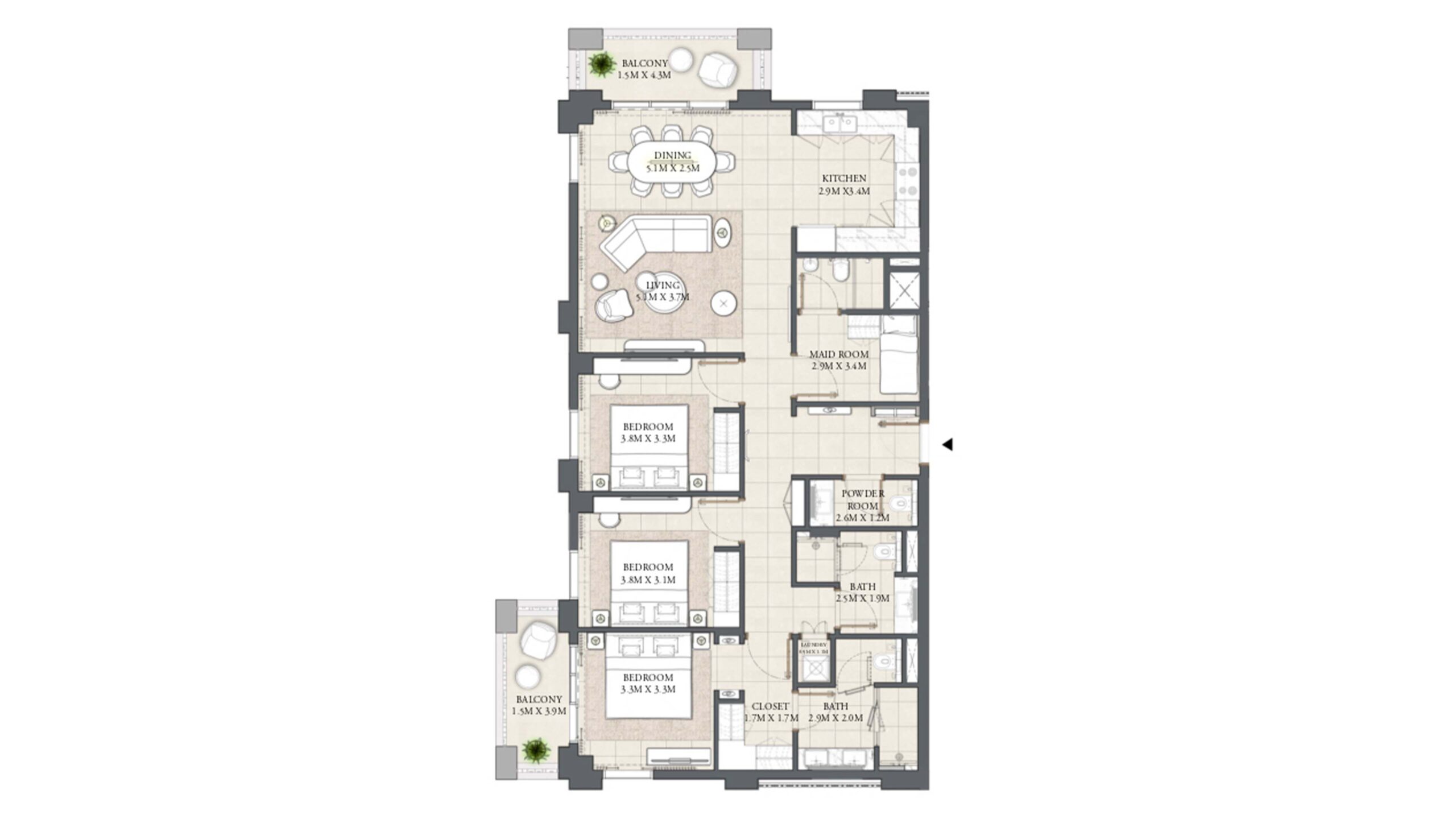 Moor at Creek Beach’s prime location in Dubai Creek Harbour provides easy access to major roads and attractions. It is just 10 minutes from Burj Khalifa and Downtown Dubai, and 15 minutes from Dubai International Airport. The location also offers a family-friendly environment with a bustling inner plaza, vibrant community atmosphere, and close proximity to various leisure and retail options.