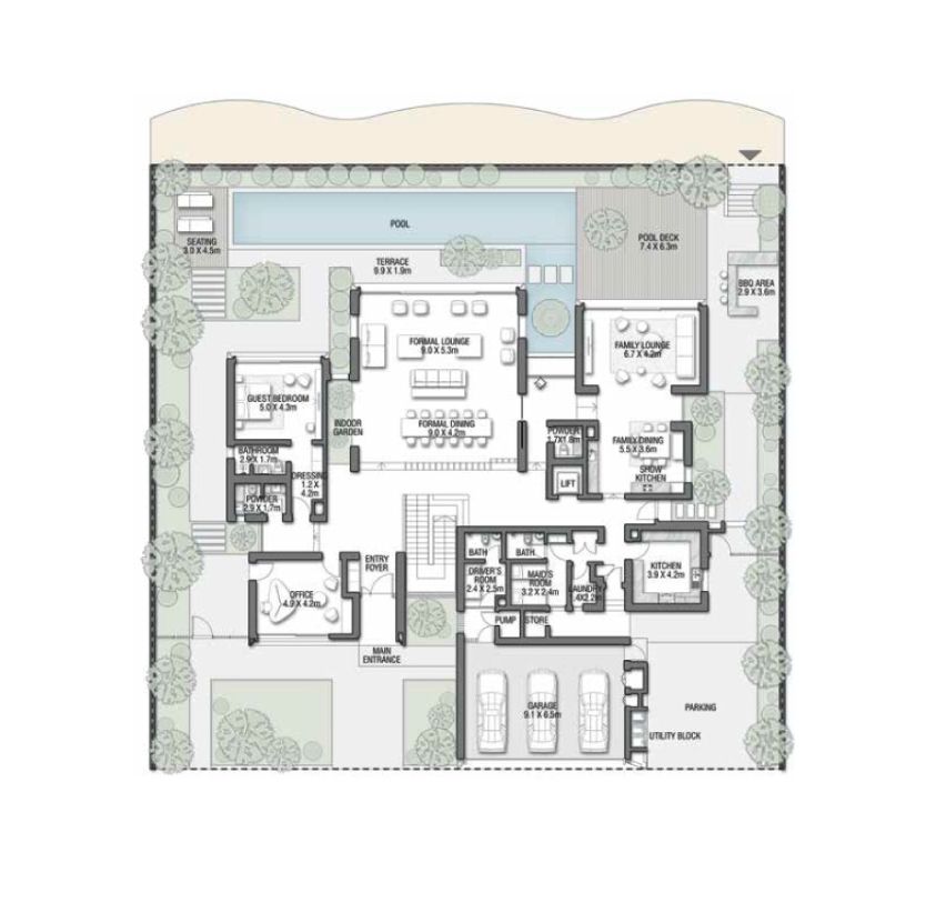 Be captivated by the dynamic spaces within, featuring seven magnificent ensuite bedrooms, formal living spaces, and provisions for both a guard’s house and a double maid’s room, all orchestrated to serve diverse lifestyles with utmost grace.