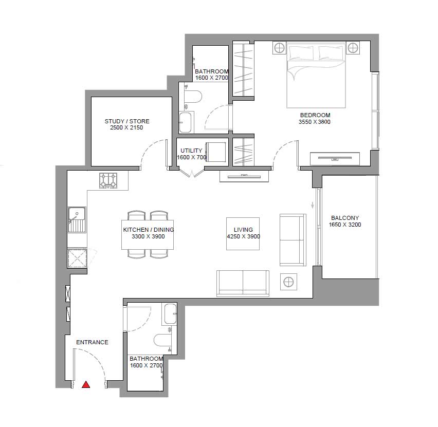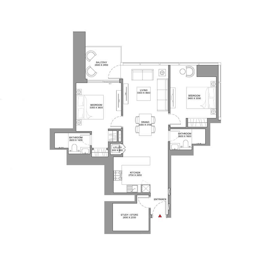 Skyscape Aura floorplans offers meticulously designed 1, 1.5, 2, 2.5, and 3-bedroom apartments, each maximizing space and views for a truly exceptional living environment.