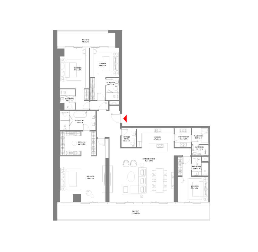 The development offers a range of residences, including 1 to 5-bedroom apartments and luxurious penthouses.